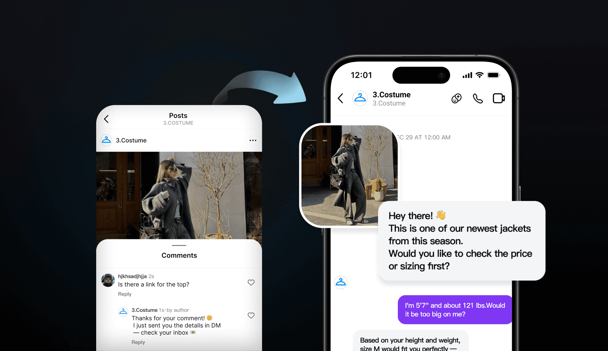 Trigger DMs instantly from public comments to start private conversations.